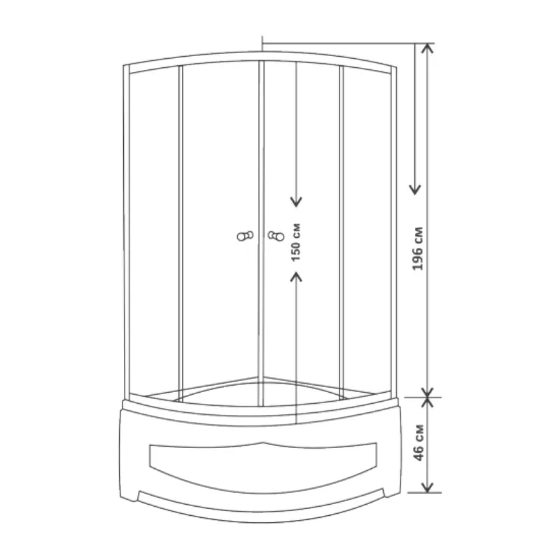 Душевой уголок Водный мир обладает размером 90х90х196 см. Конструкция состоит из четырех секций: двух неподвижных и двух раздвижных. Устанавливается в облицованный кафелем угол ванной комнаты на поддон или непосредственно на пол со встроенным душевым каналом или трапом.