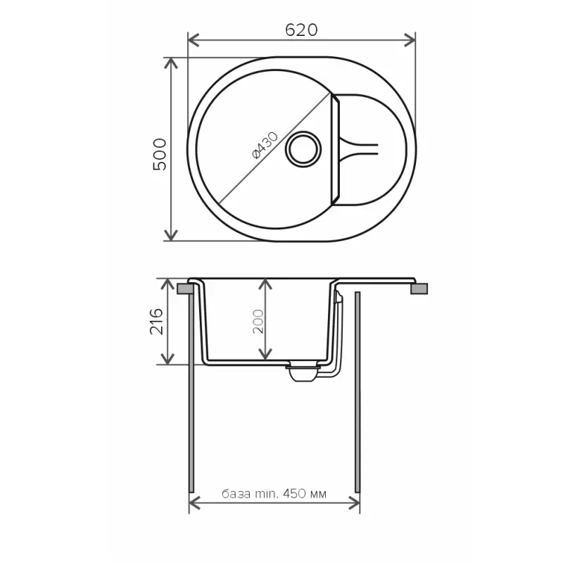Мойка кухонная Polygran Atol имеет размеры 62х50 см., ширина чаши: 43 см. Овальная форма. Цена указана за мойку со сливом-переливом.