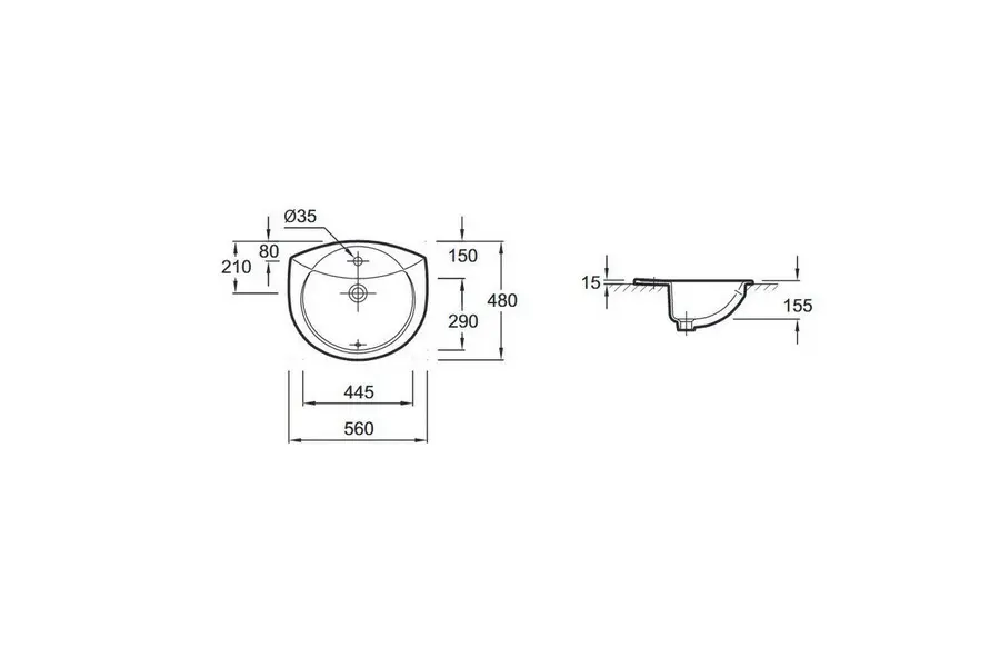 Раковина встраиваемая Jacob Delafon Odeon 56 E1061-00