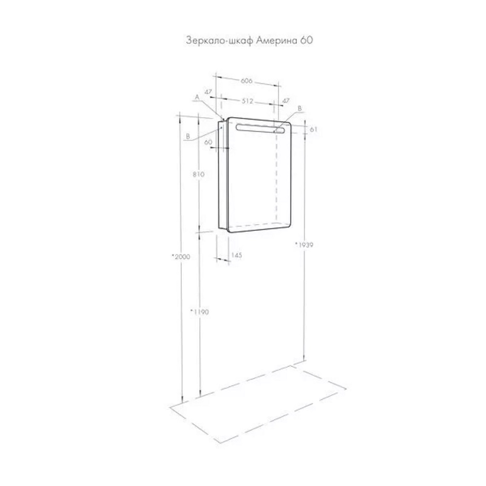 Шкаф зеркальный Aquaton Америна 60 правый с подсветкой Белый глянцевый 1A135302AM01R
