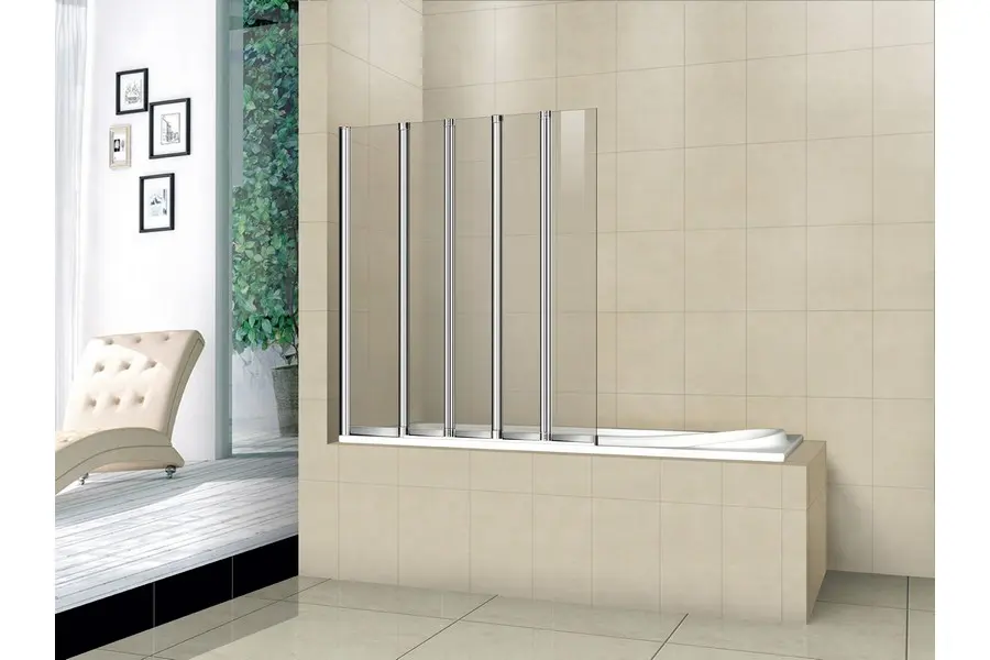 Шторка для ванны Bas Screen обладает размером 120х140 см. Конструкция состоит из пяти секций: одной неподвижной и четырёх складных. Устанавливается на любые прямоугольные ванны с ровными горизонтальными бортами.