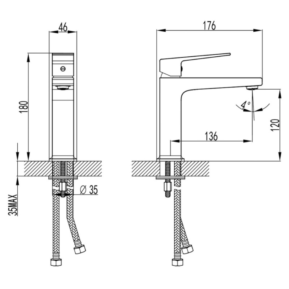 Смеситель для раковины Azario Eddie имеет литой излив. Изготовлен из качественной латуни и имеет защитное покрытие, что способствует устойчивости к коррозии и резким перепадам температуры. Управление рычажное, горизонтальный монтаж на одно отверстие.