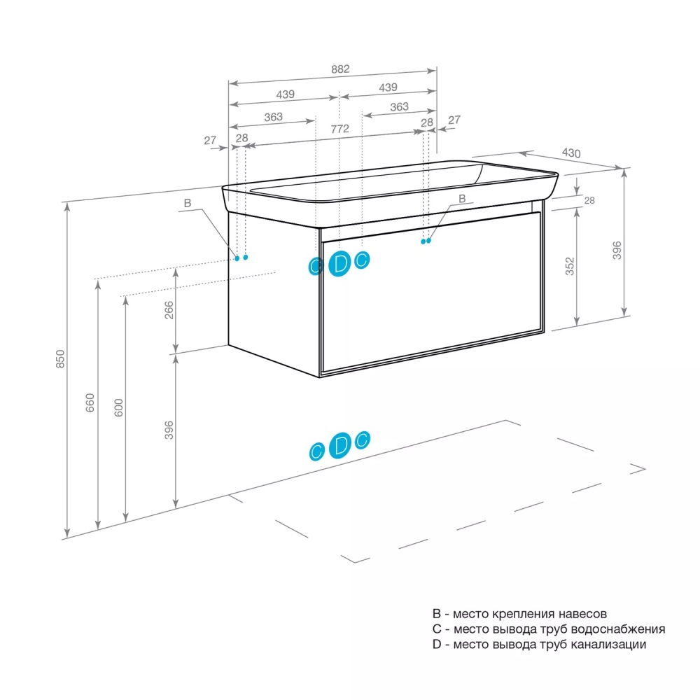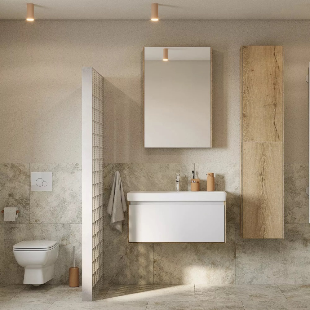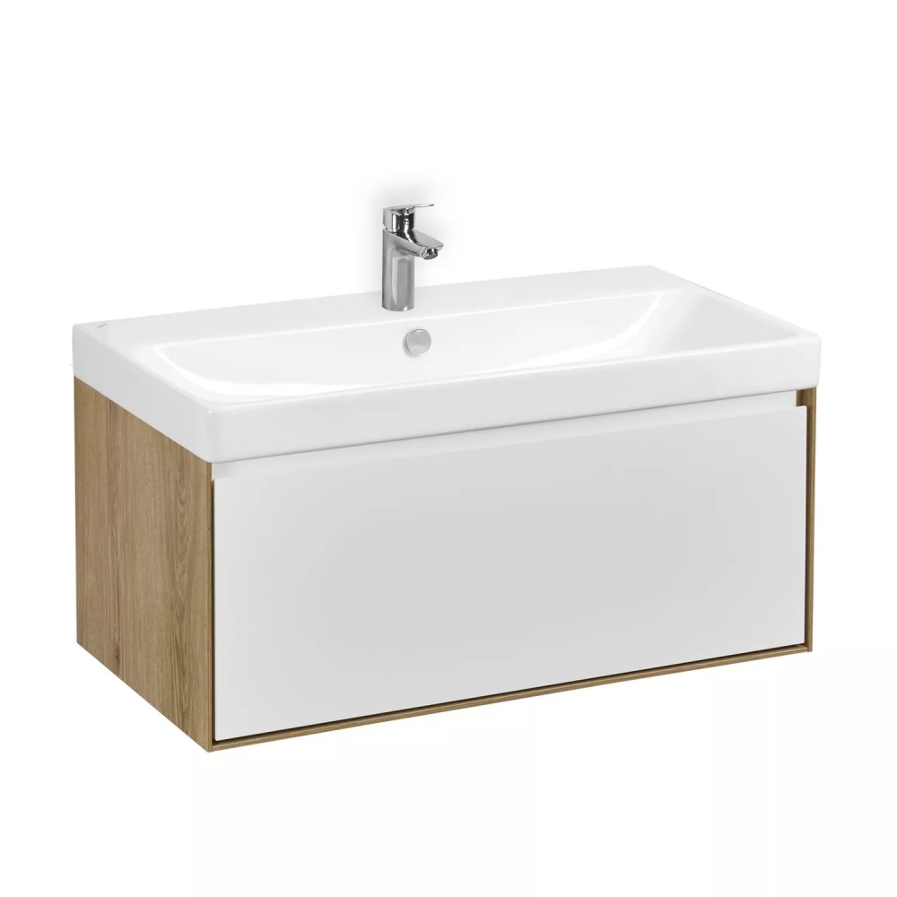 Тумба подвесная Aquaton Либерти 90 с раковиной Адриана Дуб Эльвезия / Белый глянцевый 1A2799K0LYC70