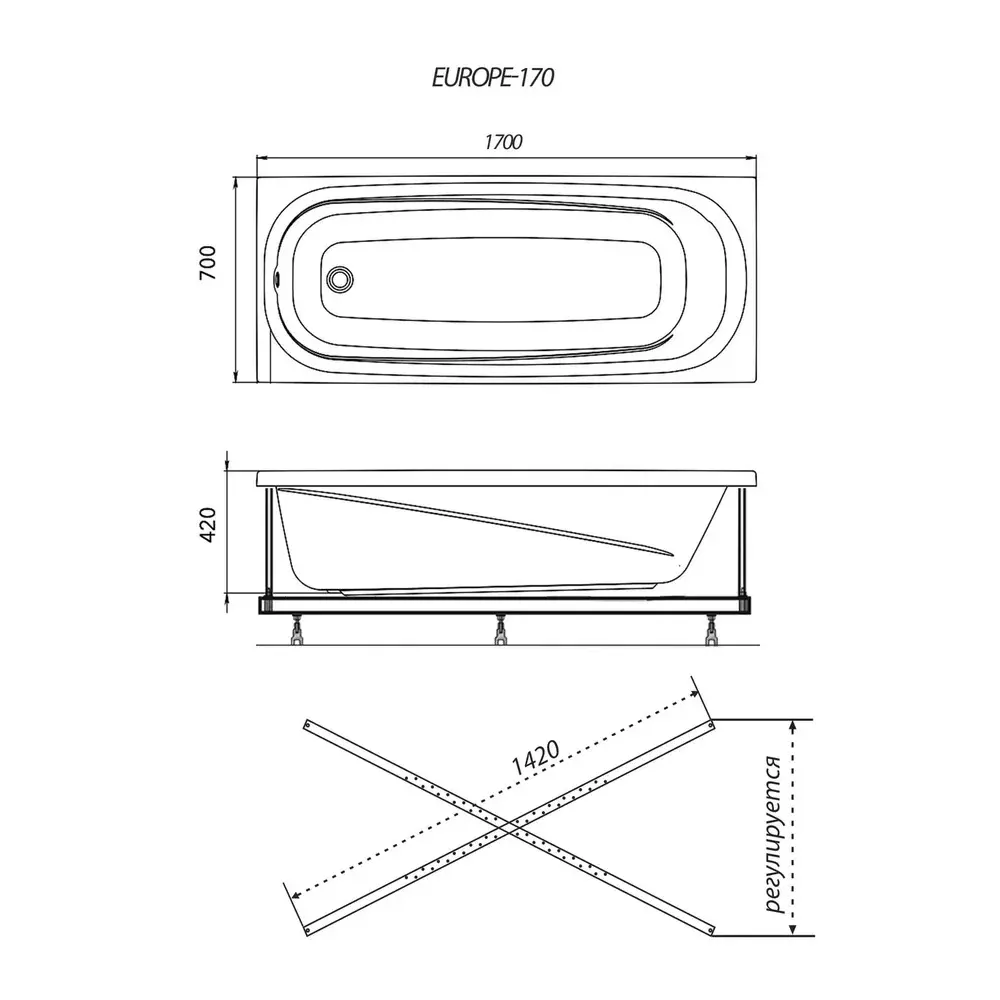 Акриловая ванна Triton из коллекции Европа имеет размер 170х70 см. Форма прямоугольная. Страна изготовитель — Россия. Каркас и установочный комплект, слив-перелив не входит в базовую комплектацию и приобретается отдельно. Дополнительно комплектуется смесителем, передней и(или) боковой панелью.