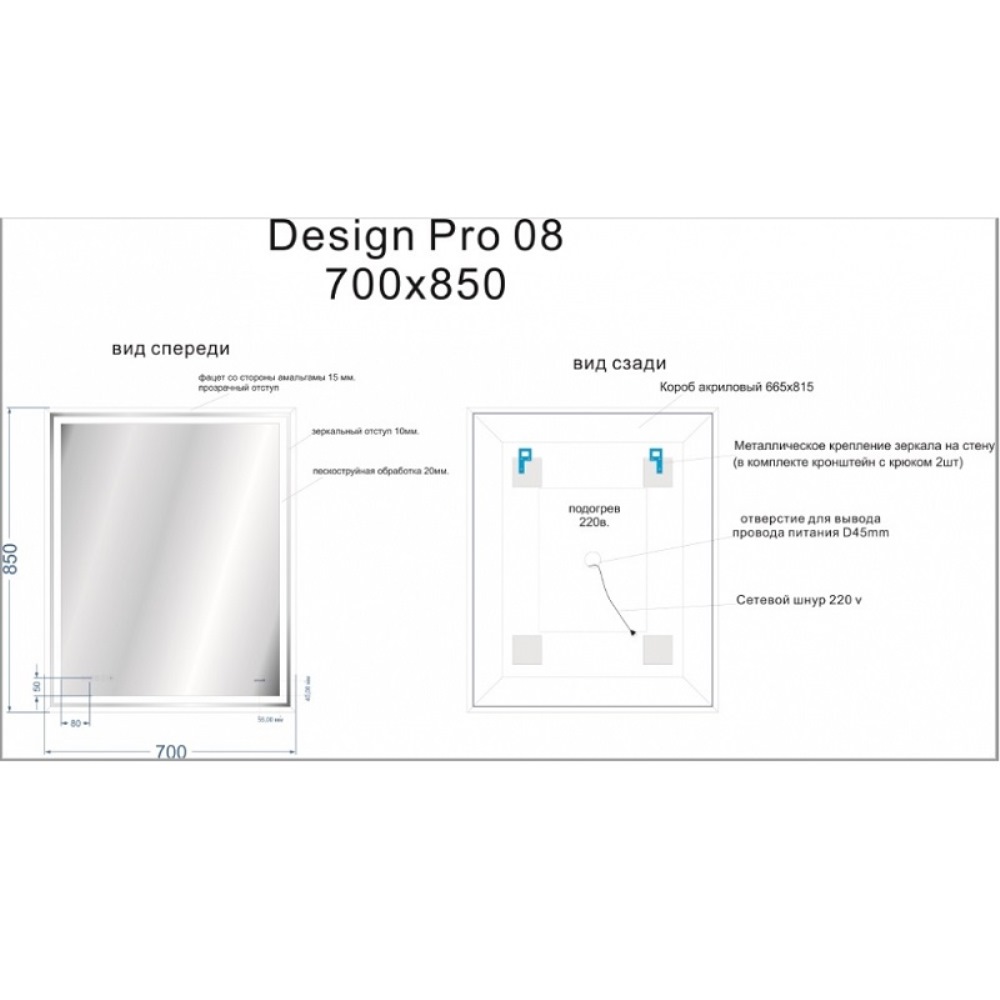 Зеркало Cersanit Design 70 подогрев + часы KN-LU-LED080*70-p-Os