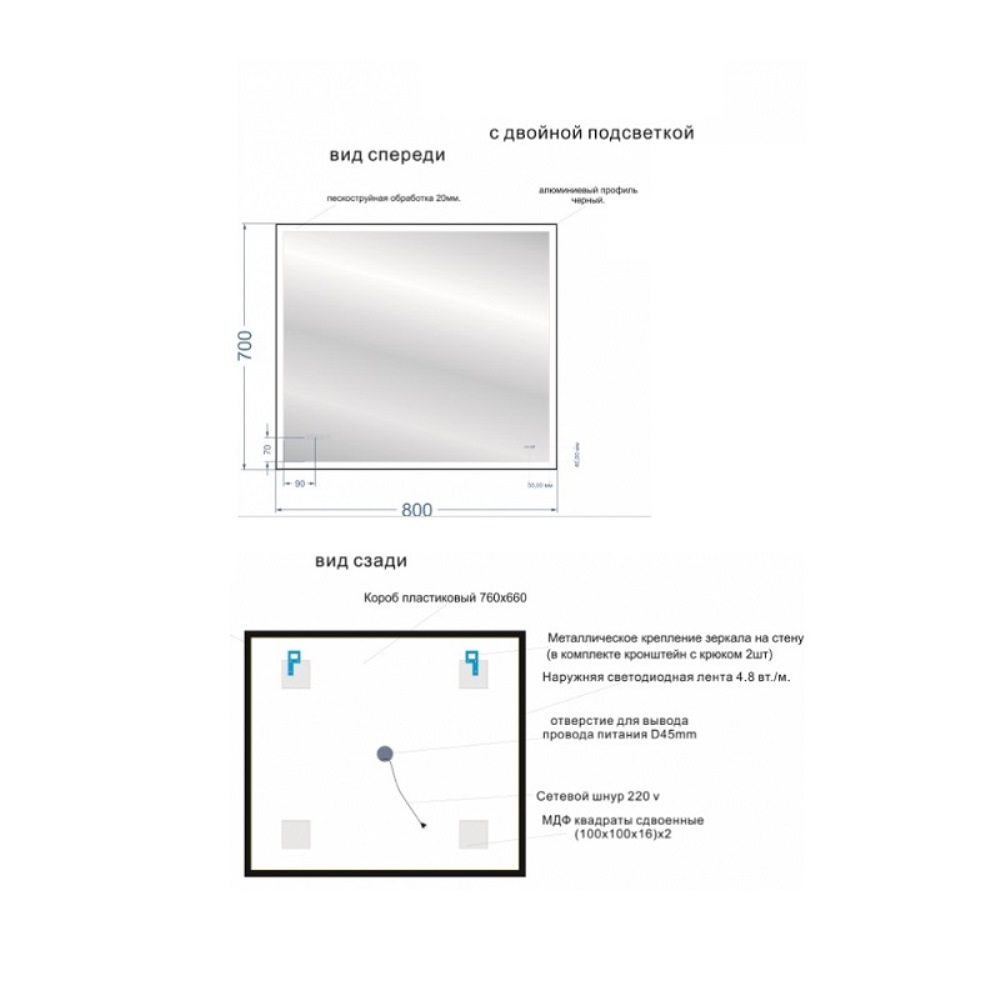 Зеркало Cersanit Design 80 часы KN-LU-LED011*80-d-Os